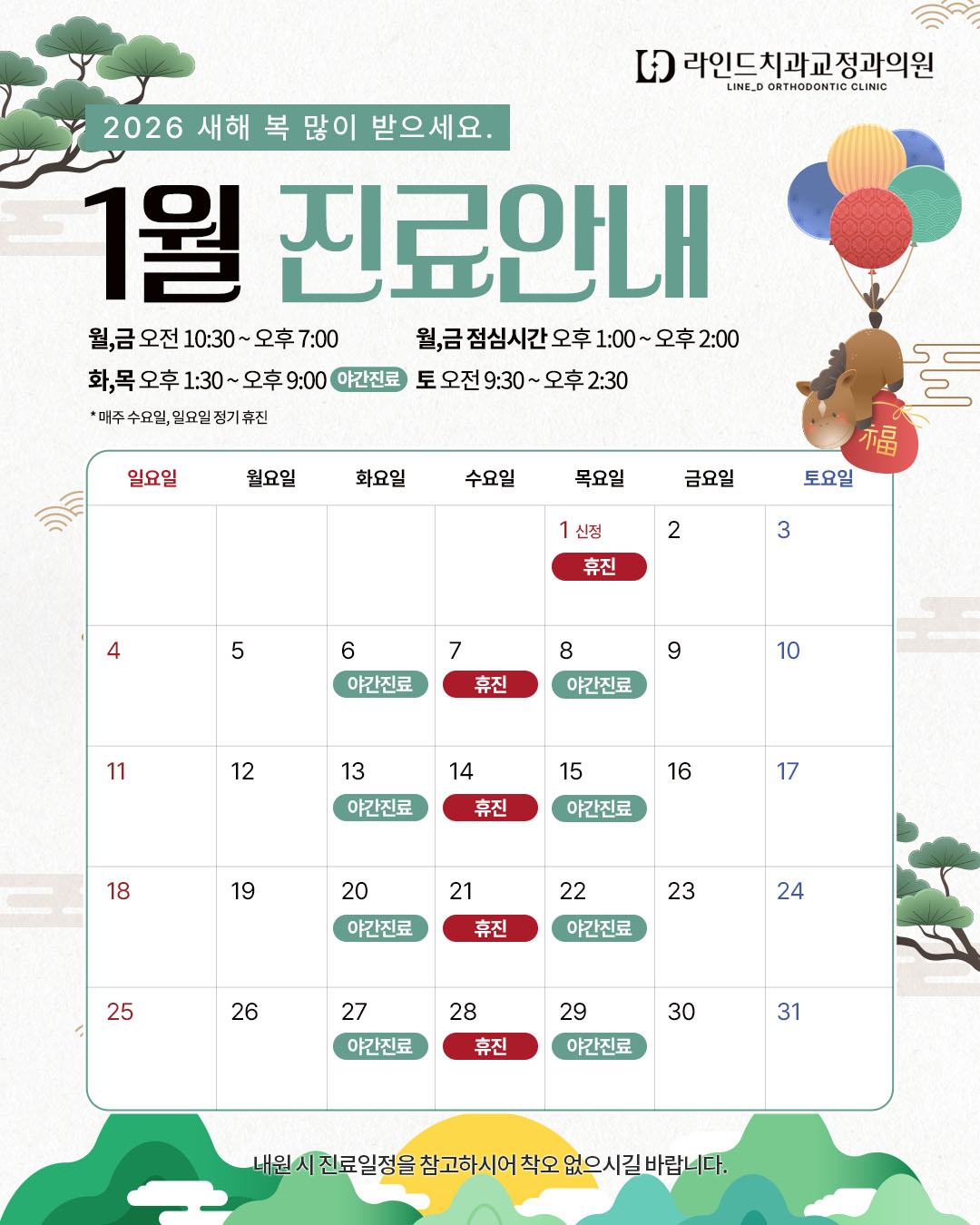 · 다른 요일이 공휴일인 경우 수요일 정상진료합니다.
